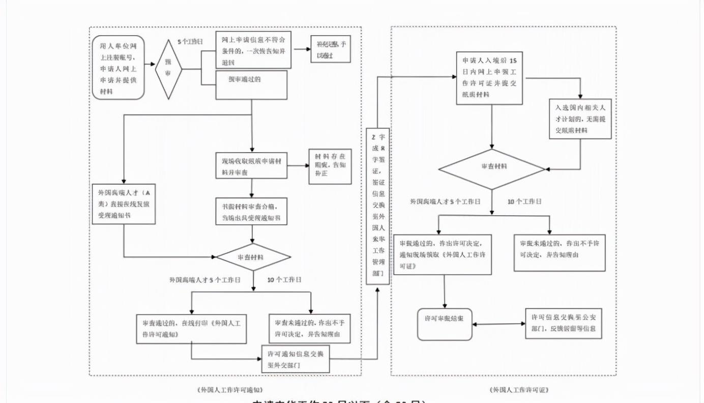 资料准备齐全,我们10个工作日可以获得外国人工作许可通知。凭通知,换领Z签证入境即可以正常工作了,同时再继续办理《外国人工作许可证》和《居留许可证》,外国人和聘用企业配合到位,全流程约1个月左右即可办完!