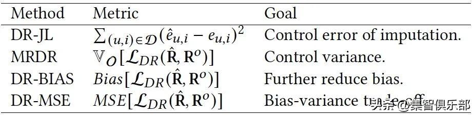 尽管DR方法通常与EIB和IPS估计器相比更有优势,但仍有一些担忧。通过对DR估计器的理论分析表明:偏差、方差和泛化界都取决于由倾向得分的倒数加权的误差推断模型的误差偏离。这是一个令人担忧的结果,因为在未点击的事件中,倾向于使用大的倾向性加权,而由于选择偏差和数据稀少,误差推断模型的误差偏差在未点击的事件中很可能是不准确的。这表明,在未点击事件中,在不准确的推断误差下,偏差、方差和泛化边界可能仍然很大。最近,一些方法,主要包括双重稳健联合学习(DR-JL)和更加稳健的双重稳健(MRDR),已经被设计用来缓解这个问题。MRDR旨在减少DR损失的方差,以提高模型的鲁棒性,但当偏差较大时,它仍然可能有较差的泛化性。DR-JL试图减少误差推断模型的偏差,以获得更准确的CVR估计值,但这种方法不能直接控制偏差和方差。因此,如果我们能找到一种更有效的方法来直接控制偏差和方差,将会很有帮助。