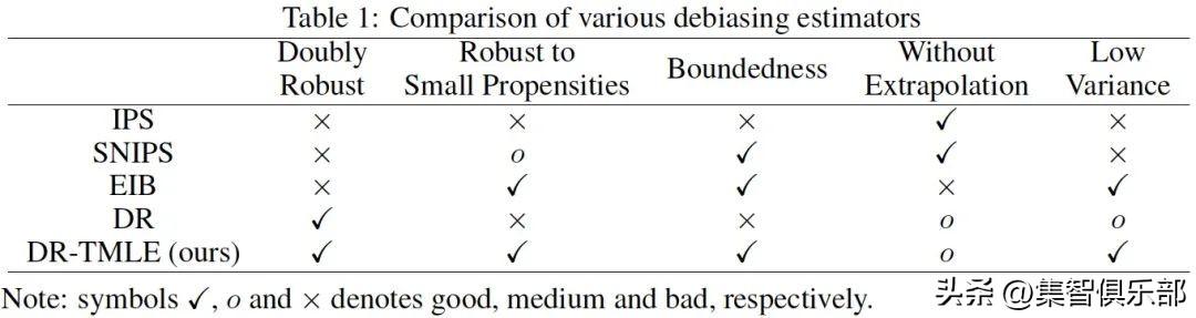 为了评估这些方法的性能,我们引入了五个角度来比较和评估推荐系统中的不同方法,包括双重稳健性、对小倾向的稳健性、有界性、无外推性和低方差。如果不能满足其中任何一个,都可能导致次优的性能。我们在这五个方面对各种估计器进行了比较,发现IPS、EIB和DR方法只享有其中几个理想统计特性。