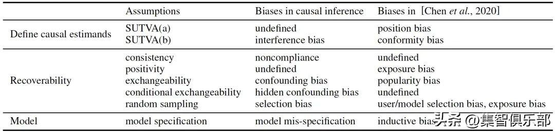 然而,一个统一的因果分析框架还没有建立起来。一方面,现有的推荐系统的因果分析方法对感兴趣的科学问题缺乏明确的因果和数学表述,导致该领域普遍存在许多模糊的因果概念,阻碍了因果推荐方法的发展。需要澄清许多混乱的问题:到底是什么被估计,为了什么目的,在什么情况下,通过什么技术,在什么合理的假设下。另一方面,推荐系统的观察数据的一个明显特征是存在各种偏差,这是得出因果结论的主要障碍。然而,推荐系统中偏差的正式因果定义仍然不明确,尽管各种偏差已经被发现并以描述性的方式提出。由于缺乏对因果问题和偏差类型的正式阐述,很难清楚地讨论去偏方法的理论属性、优点和缺点。也很难清楚地解释这些方法背后的假设。因此,很难开发新的去偏算法。