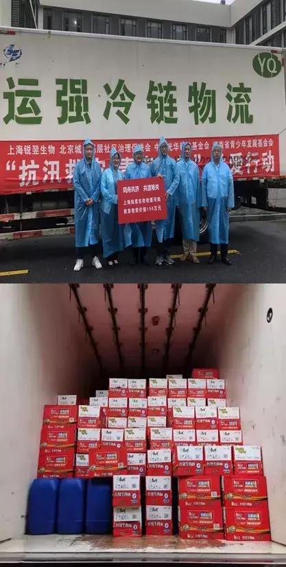 2021年7月份,河南多地遭遇强降水天气,灾情严重。对此,锐翌生物积极参与“抗汛救灾 青春护航”关爱行动,向河南卫辉灾区积极捐赠救急物资,首批救急物资包括大功率防汛泵、消毒原液、方便面等必需物资品,为受灾群众和抢险人员提供生活保障。