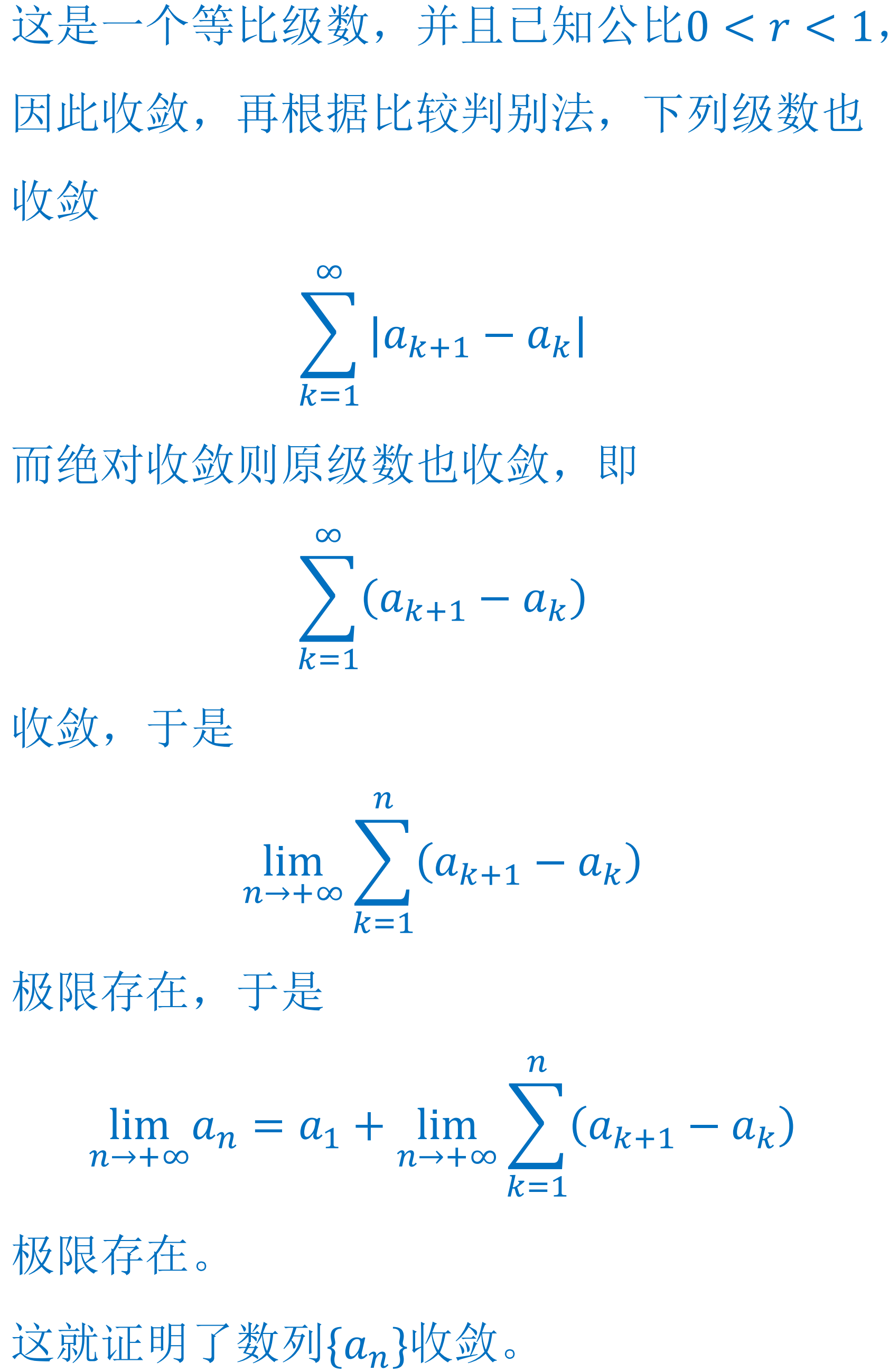 可以看出,用压缩数列法来证明非常简单,只需要一步即可完成。可以验证,在很多情况下,压缩数列法都是一种非常快捷的判断数列收敛的方法。感兴趣的同学可以找到更多的考研题目来试一试。