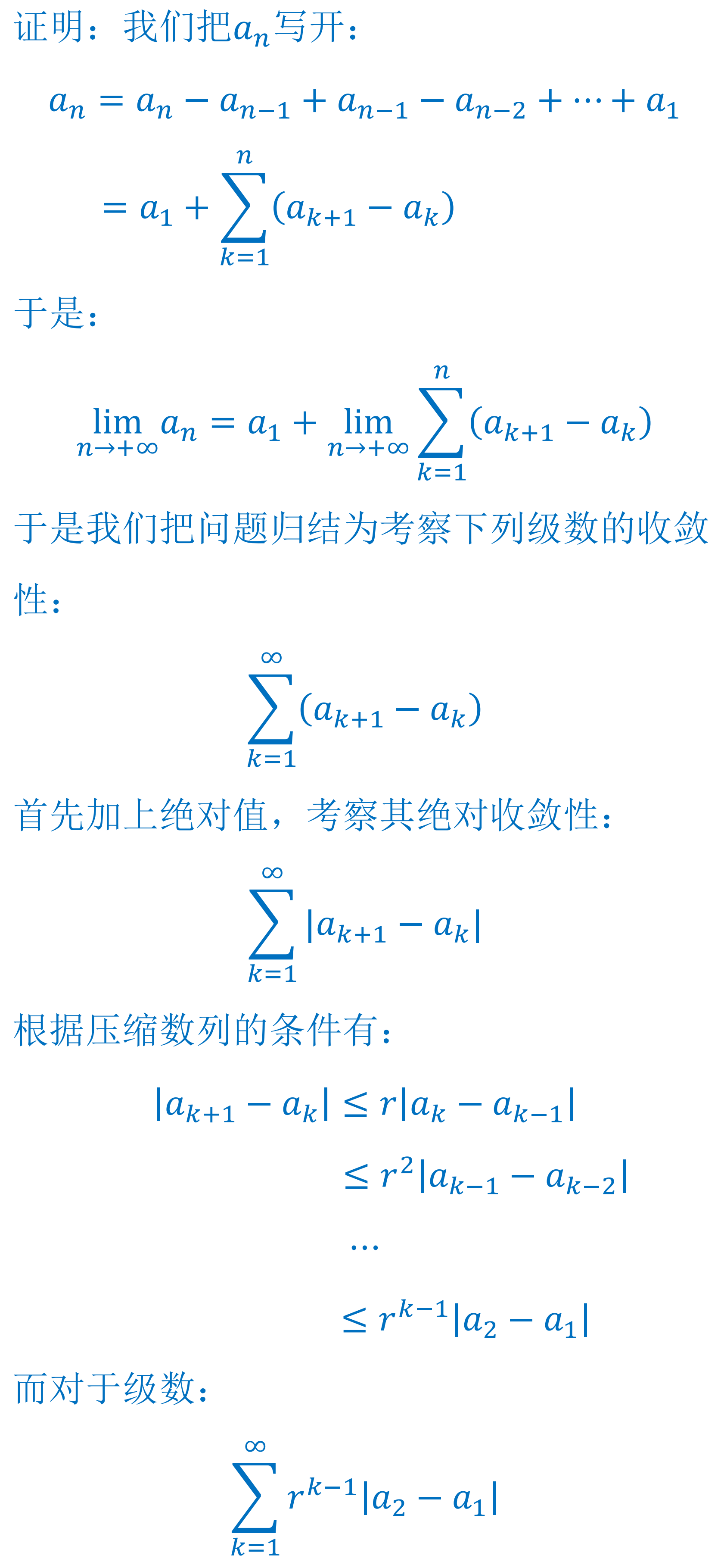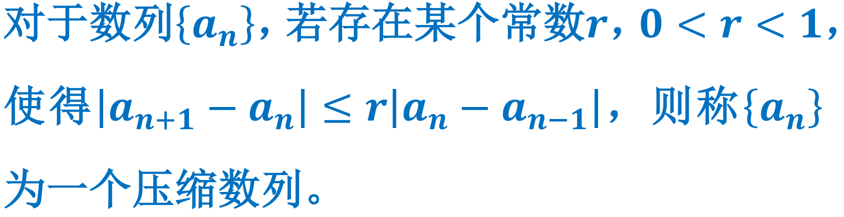 从这个定义也可以看出来“压缩”的意思,指的就是每两项之间的差值在逐次缩小,并且还要小于一个比例常数,当然我们还要求,这个比例常数比1还要小。