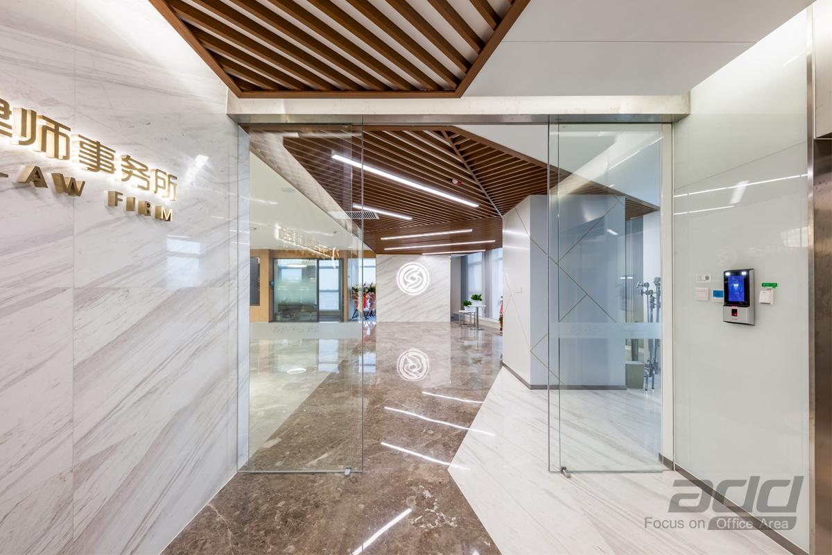 项目最大的挑战是打造一个复杂和自由流动的空间布局:将大厅和茶水区放置于同一轴线,以律师事务所的日常接待习惯为出发点配合动线布置和视线联接,既能够实现相对自由的环境,也能方便人员之间的沟通与交流,使空间关系更为交融和合理。