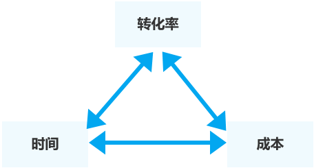当追求在短营销时间内实现高转化率,我们可能就需要投入更多的营销成本来转化更多用户;当追求在短营销时间内控制营销成本,那么营销转化率可能就不是很理想;当追求控制营销成本及提高转化率,可能整个营销时间/营销周期就需要比较长。