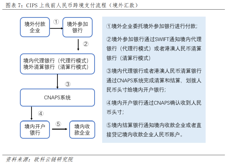 因此,CIPS在很大程度上解决了大额支付系统(HVPS)的不足,可提高人民币跨境支付清算效率,推动人民币的国际化。
