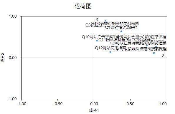 Q1-Q4在因子2上有较高的载荷,它们主要反映了教育网站教学质量方面的满意度;