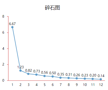 除了特征根外,碎石图也可以辅助决策提取因子个数。