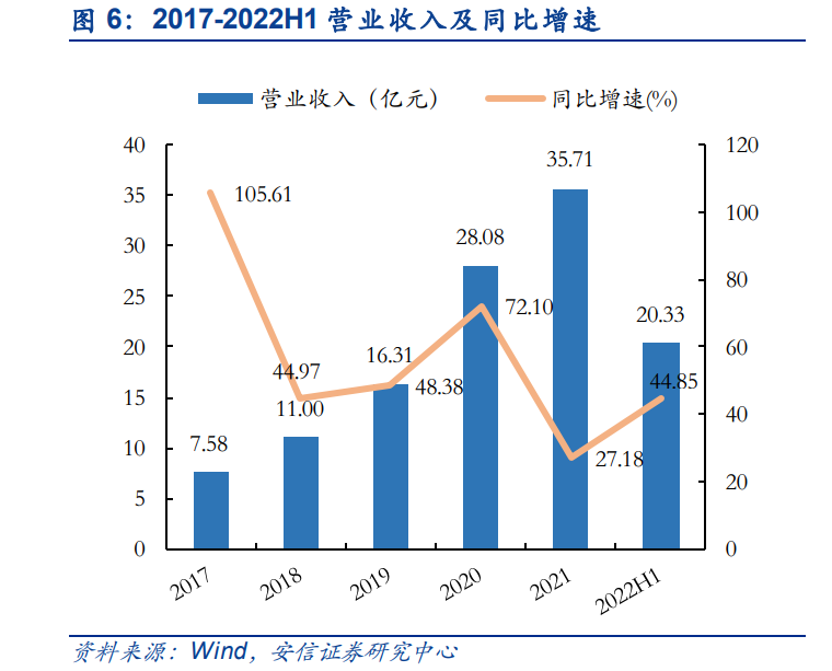 优质存量客户及增量客户拓展带动营收逐年稳定增长。2017-2021 年,公司营业收入从 7.58 亿元增长至 35.71 亿元,复合增长率达到 47.33%;归母净利润从 0.98 亿元增长至 5.05 亿 元,复合增长率为 50.67%。2022H1 公司实现营业收入 20.33 亿元,同比增长 44.85%,归 母净利润 2.16 亿元,同比增长 29.51%。业绩呈现快速增长是报告期内公司拓展如通用别克、 东风本田等新的头部汽车客户,同时加大挖掘原有消费品、电信运营商、金融等行业头部存 量客户的增量预算所致。
