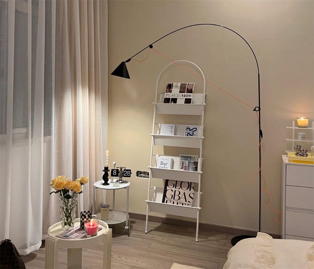 钓鱼灯搭配边几,以及一组多层书架,打造出了一个简单的休闲区,装饰简单,却呈现出格外惬意的感觉。