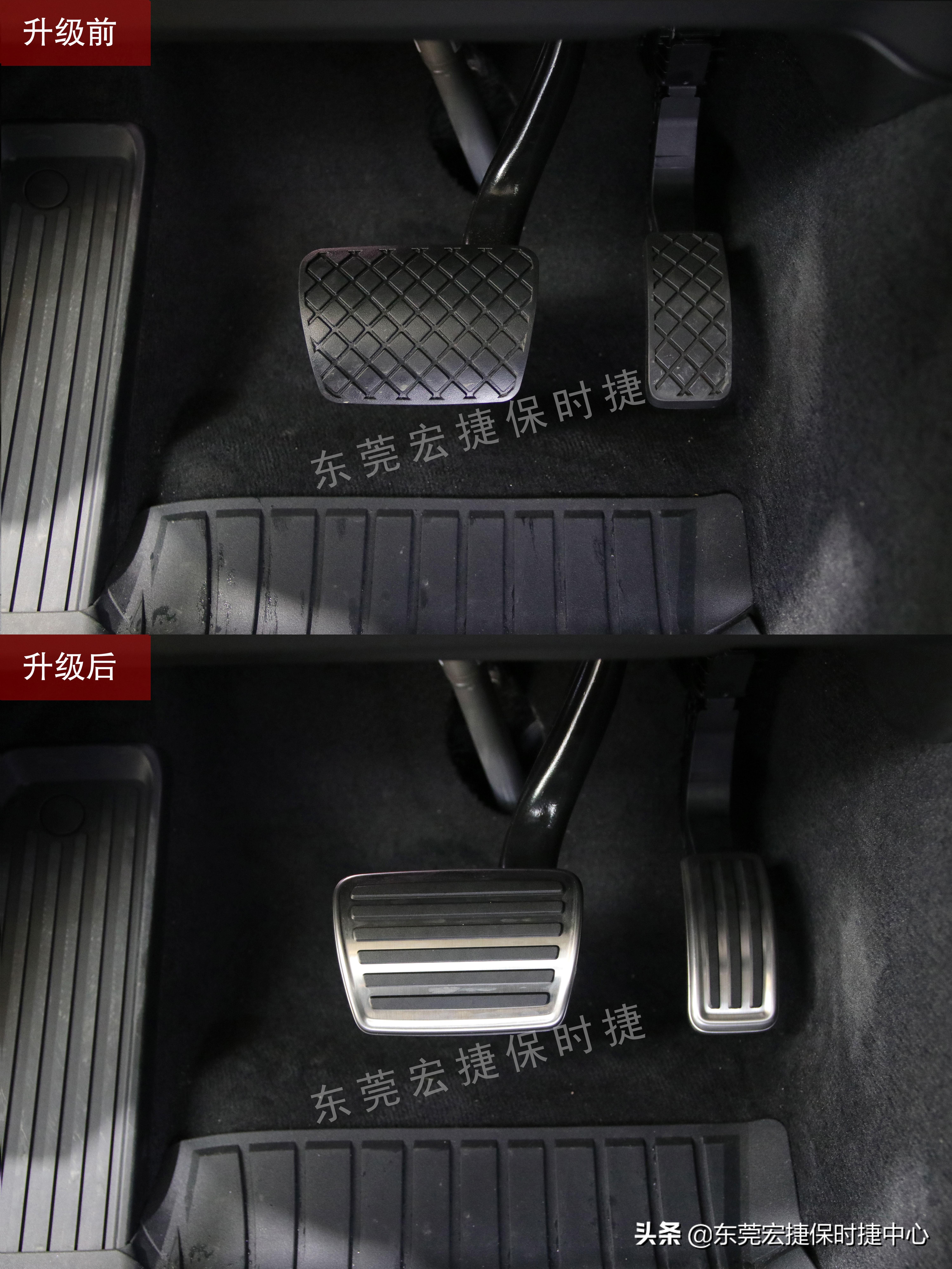 铝合金油门踏板、铝合金刹车踏板,增大摩擦力,安全又美观。