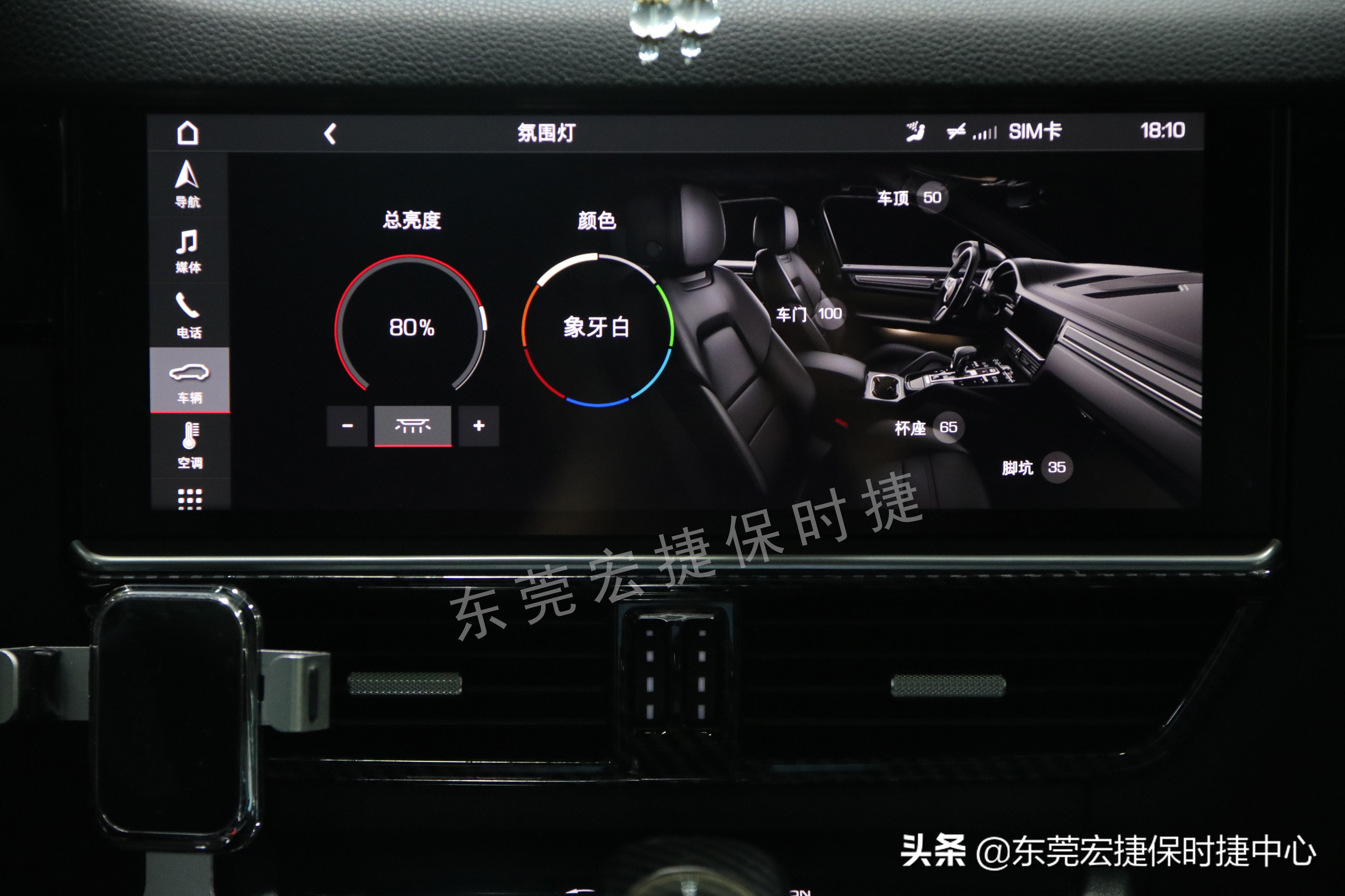 新卡宴原厂控制氛围灯,缤纷色彩自由切换,亮度随心调整。越夜越曼妙~