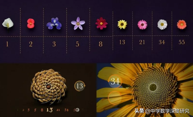 数学家发现:向日葵中心种子的排列图案,树木随年期长出的分枝的规律等都遵循斐波那契数列。斐波那契数列矗立在雄伟的建筑上,辉映于葱茏成蕤的草木间,盛开在嫣红姹紫的花丛中。
