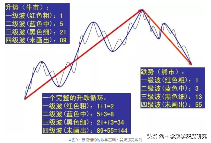 在资本市场上,斐波那契数列似乎也很神奇,例如许多重大的行情之间间隔正好是斐波那契数列,如股票指数增减的"波浪理论":