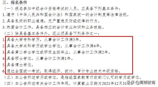 且严格来讲,初级会计的含金量不高,若要想找到不错的工作,考生至少得拥有中级会计职称,但中级技术职称的报考条件和初级可谓是天壤之别,对工作年限有非常高的要求: