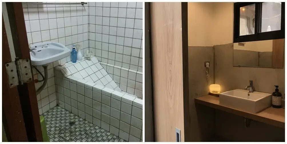 原格局的卫浴空间位于狭长的廊道上,并配有浴缸规划,根据店面需求拆除浴缸改为洗手台,而马桶位置则不变更,不仅更符合使用需求,活动面积更加宽敞舒适。