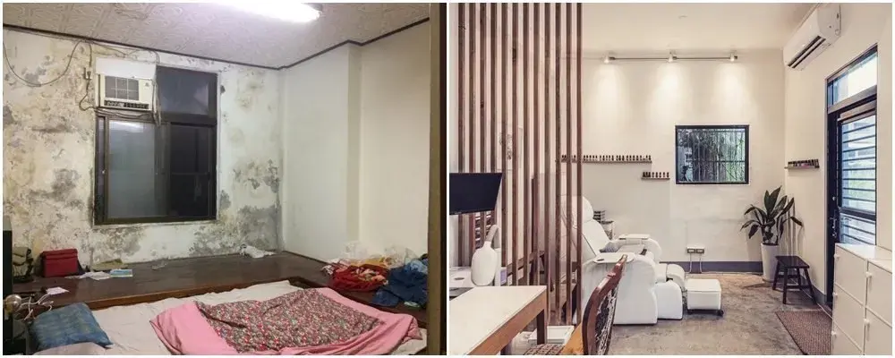 但老屋常见的漏水、壁癌、光线不足,甚至因年久失修墙壁出现大型裂缝等难题都被 Solo 碰上了!她靠着自己钻研、与工班沟通讨论,自行规划、发包,历时三个月终于把恐怖老宅翻新成她心目中的完美空间,创立自己的理发品牌。