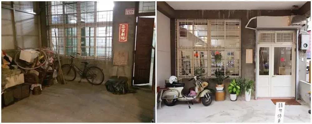 而大门同样保留部分完好桧木,再开门洞换上玻璃,改善室内采光并拉近与行人的距离。另外,最后因预算不足,部分油漆如铁窗花则为自行 DIY 油漆 。