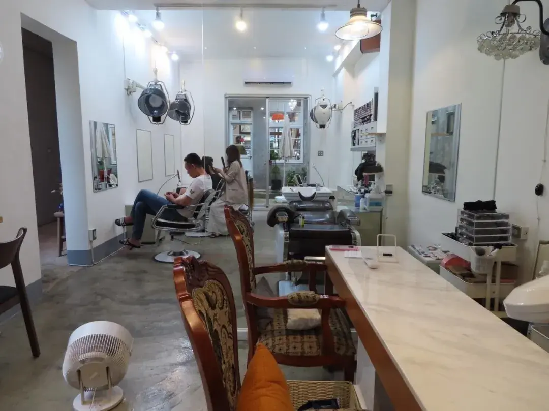 原有老屋的大门及窗框为质量良好的桧木,也是当初 Solo 选择这间老屋的其中一个原因!因此铁窗花、窗框皆沿用原对象,在搭配复古味十足的电影座椅及美发店的代表性设计旋转灯,在整排街屋中格外亮眼,成功吸引左邻右舍驻足欣赏。
