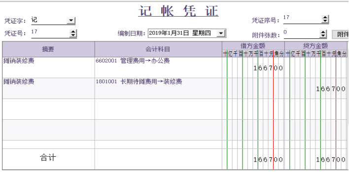 装修费按租期5年分摊:100000÷5年÷12月=1667元