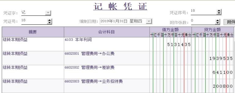从上面的科目汇总表可以看到我们需要结转的损益类科目有管理费用,所以我们再做一笔结转损益的分录。