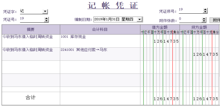 在上面的试算平衡表我们可以看到,现金出现负方余额,其他应付款出借方余额,通过查账,我们可以得知现金收入小于支出,大华公司前期的费用是由股东马东垫资的,费用已在账上体现,但是没做现金收入,所以要补一张收款收据平账。
