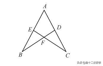 例题3:如图,AB=AC,D,E分别为AC,AB的中点,连接BD,CE相交于点F。求证:∠B=∠C.