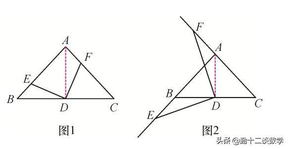 (1)如图1,若点E,F分别为AB,AC上的点,且DE⊥DF,求证:BE=AF;