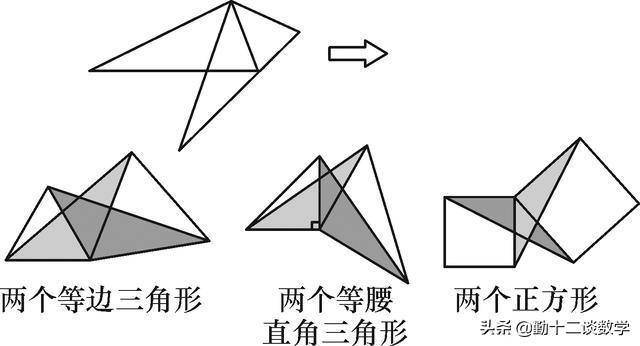 此模型可看成是将三角形绕着公共顶点旋转一定角度所构成的,旋转后的图形与原图形之间存在两种情况: