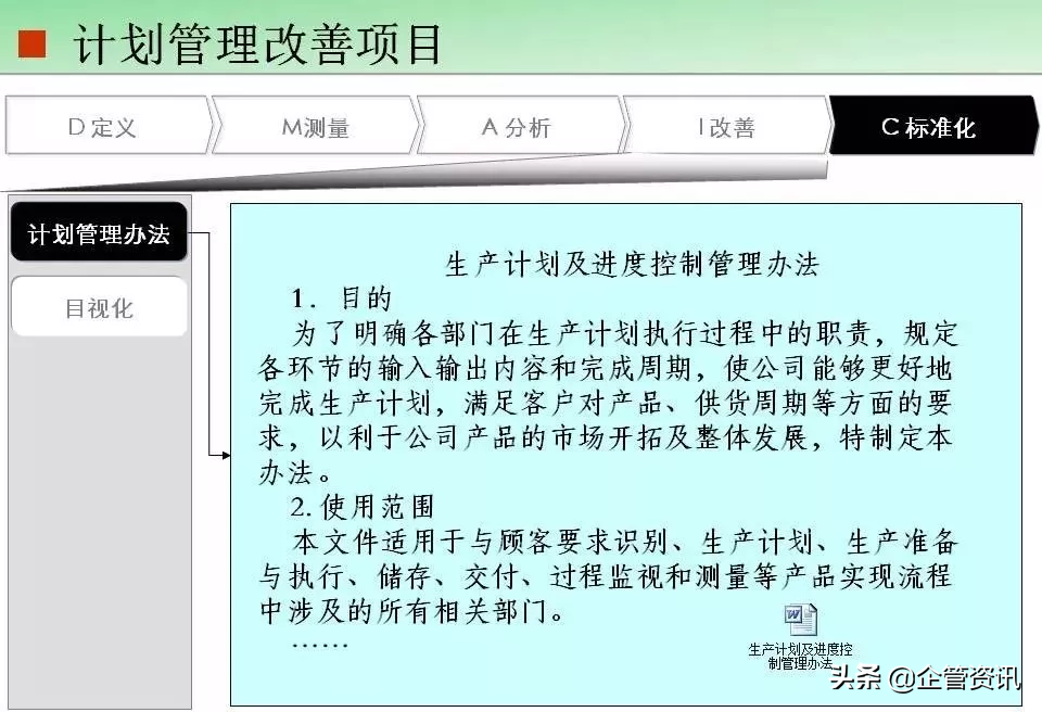 版权声明:我们致力于保护作者版权,注重分享,被刊用文章【精益改善案例(精益计划管理改善案例PPT)】因无法核实真实出处,未能及时与作者取得联系,或有版权异议的,请联系管理员,我们会立即处理! 部分文章是来自自研大数据AI进行生成,内容摘自(百度百科,百度知道,头条百科,中国民法典,刑法,牛津词典,新华词典,汉语词典,国家院校,科普平台)等数据,内容仅供学习参考,不准确地方联系删除处理!;