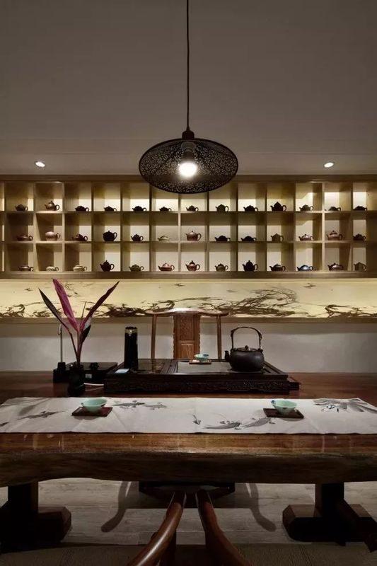 设计师将背景设计成紫砂壶收藏墙,给人的品味感是不是立马提升起来了呢?