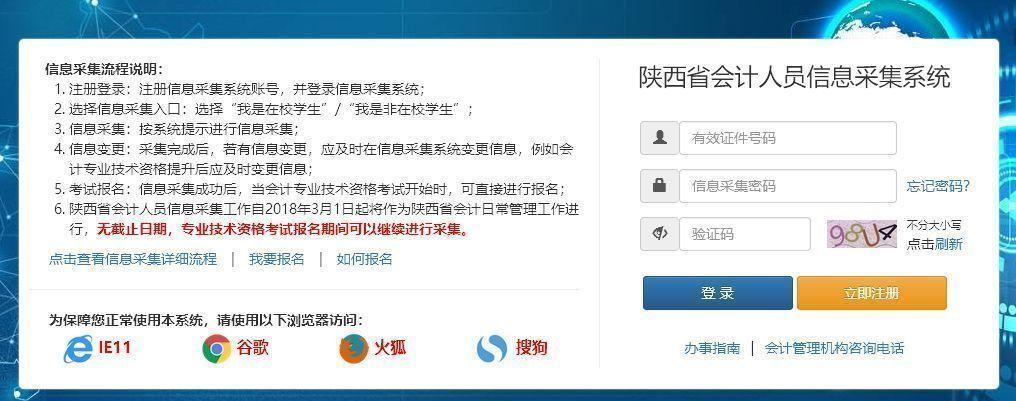 找到会计人员信息管理链接,进入《陕西省会计人员信息采集系统》