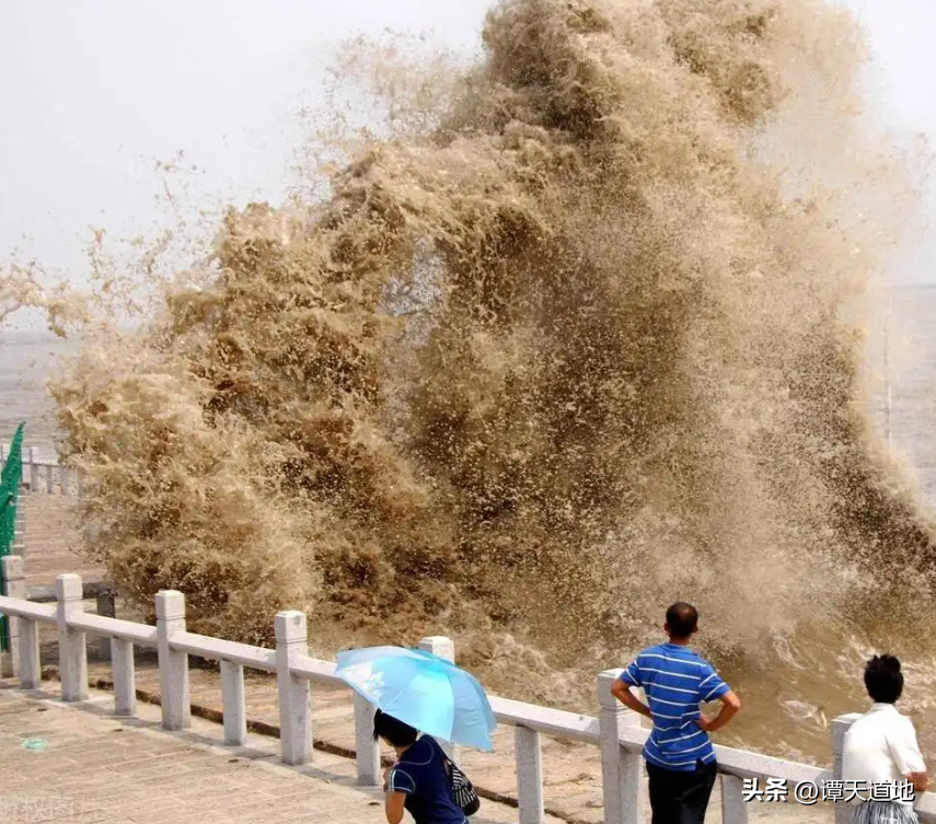 再比方说:浙江杭州湾那边,每年都会发生较大的涨潮,观潮的时候,切记,一定要离得远一点,因为这个地方的潮水,往往来势凶猛,就像是一堵墙一样!