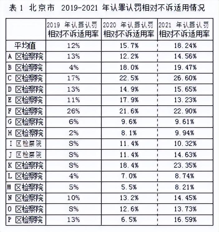 下表1列举了2019年、2020年、2021年北京市不同区域认罪认罚相对不起诉的适用情况。