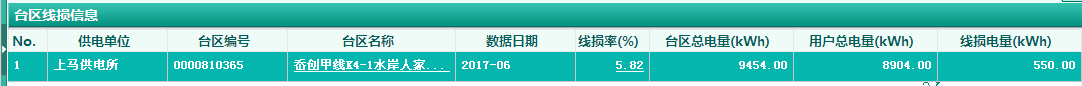 该台区在2017年6月6日出现负损,并在8日出现较大负荷,没有恢复正常。初步判断为台区下低压用户户变关系错误。但是经过现场核查及营销系统比对,没有发现用户户变关系错误。且对低压用户用电量一一分析,没有发现售电压突变的现场。最后,经过供电量判断,发现该台区下户号为****16950489的用户有两个供入计量点,一个为上网计量点,一个为发电计量点。