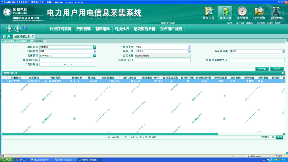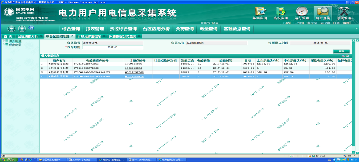 “后王峪公用配变”台区线损率出现负损现象。经采集系统核查,至2017年11月20日,该台区线损率-55.37%,线损电量-557kWh。
