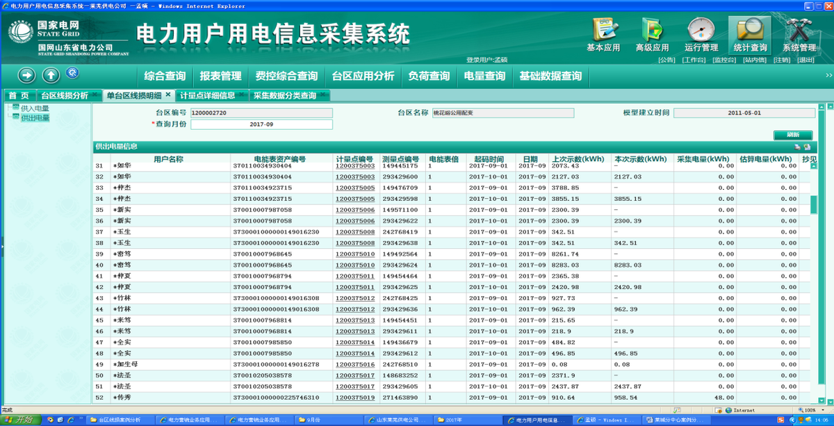 该台区出现高损,经采集系统核查,台区线损模块中,有43户用户无止码,造成这批用户无法计算抄见电量。经采集系统查询,这43户用户在同一个终端“桃花峪村”下。该终端长时间未采集,9月30日,台区经理对终端进行了更换,并于下午16点进行了补招。由于更换集中器导致供出测量点发生了变更,根据线损计算规则,变更了测量点的供出量分两段计算抄见电量。原测量点无止码致使第一段抄见电量不能正确计算。