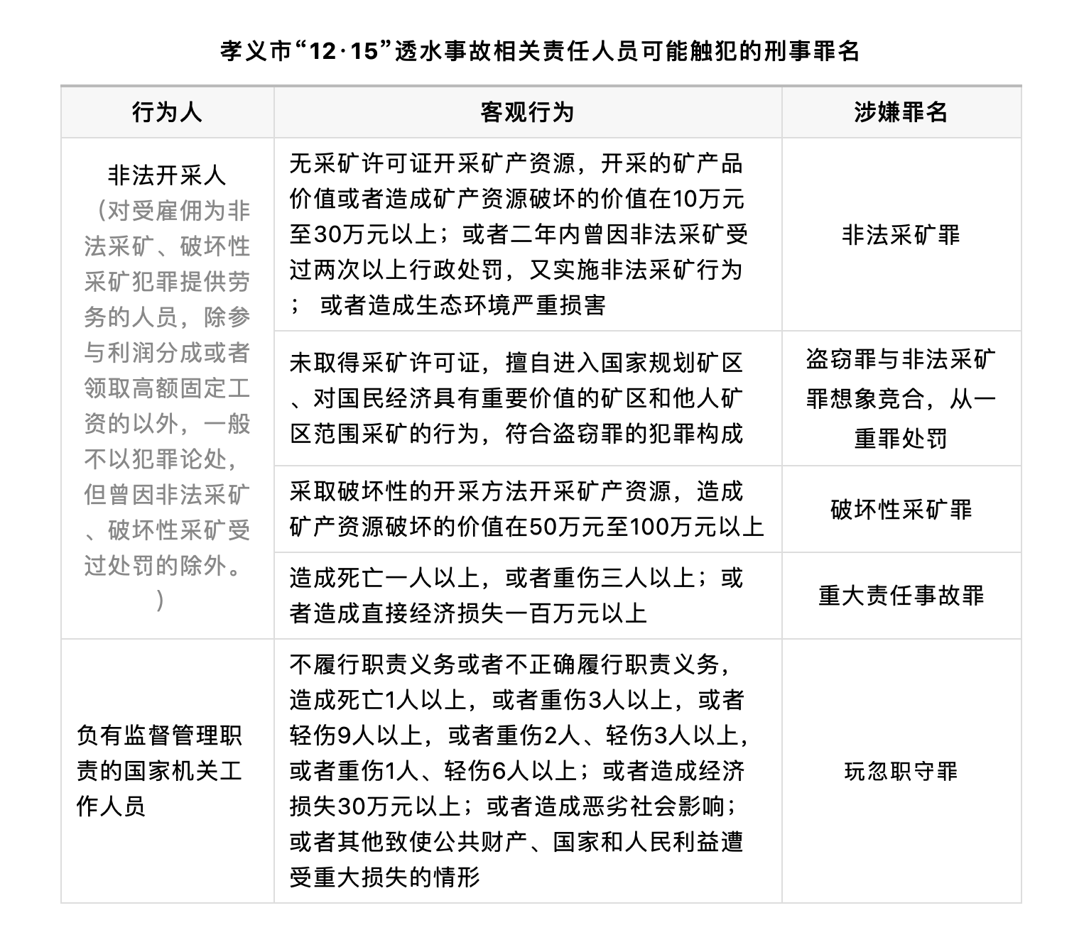 孝义市“12·15”透水事故相关责任人员可能触犯的刑事罪名