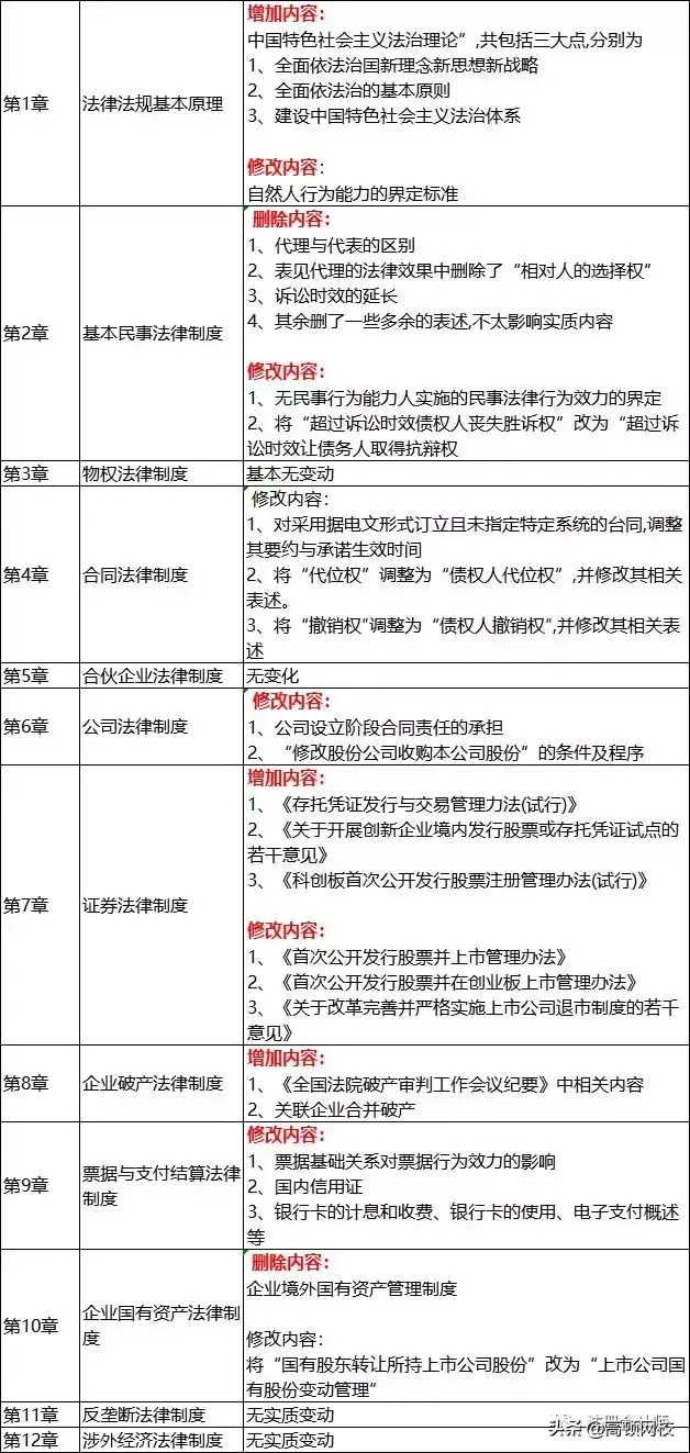 点评:新教材相比2018年,从内容上看整体变动较大。第一章、第七章、第八章新增,第九章重写,第二章第十章删除部分内容,所以大家最好参照新教材来复习。