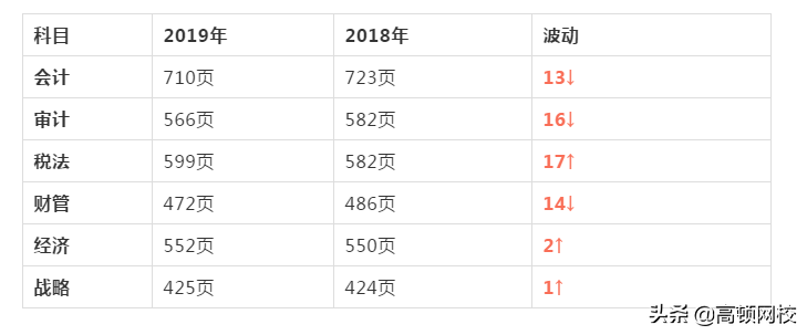 除了税法科目增加了17页之外,会计、审计和财管都减少了页数,这对考生来说简直就是天大的好消息!