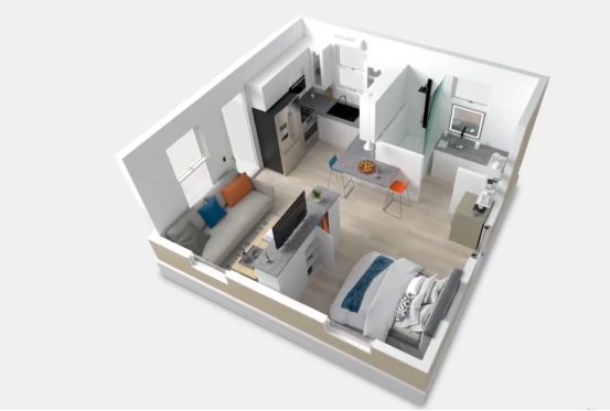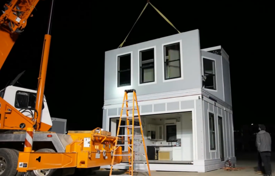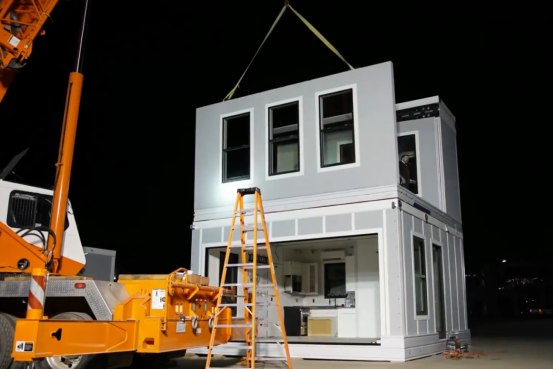 Boxabl 是近期最出名的一家预制房屋企业,不仅是由于他们的新颖的房屋折叠方式以及高预制率,而且世界首富马斯克亲自买了一套boxabl的房屋,同时也投资了这家企业。Boxabl的一个模块在运输到场地后,需要吊车辅助安装,在一天内可以安装完成。房屋占地35平米,2.5米净高,预制了门窗、厨房、卫浴等各个设备。单个模块的价格约为五万美金,预制内装的质量相当高。