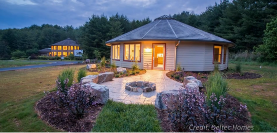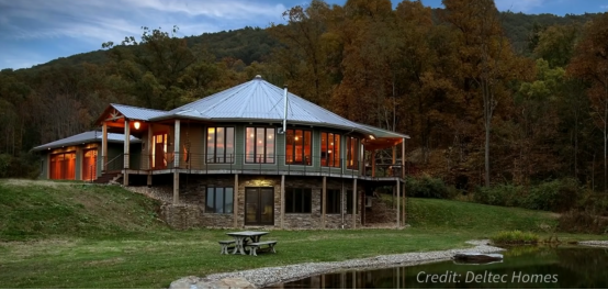 Deltec 的装配式房屋是以结构强度出名,他的圆形设计,使他能更好的抵御极端天气,例如暴风。他的另一个主要风格是,主要的承重结构为外侧的弧形墙体,其内部具有大跨度空间,没有额外的承重墙和柱,对于室内设计以及室内空间利用非常友好。房屋局部墙呈弧形,并且可以大范围安装窗户,可以从感官上使外面环境与室内融为一体。房屋为木龙骨结构形式,墙板为工厂预制定做,运到现场直接安装。