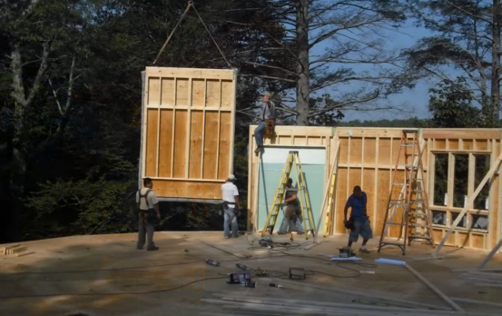 Ecoliv房屋是一宽木龙骨预制化模块化房屋,整体房屋可由单个模块组成,也可由多个模块进行拼装组成,每个工厂加工的模块以木龙骨为主体,做好内装、外装甚至家具,多个模块可在现场用吊车进行拼接。