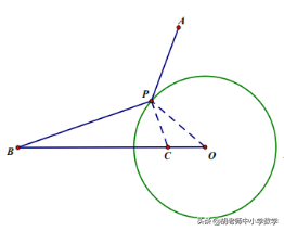 第一步:连接动点至圆心 O (将系数不为 1 的线段的两个端点分别与圆心相连接),则连接 OP、OB;