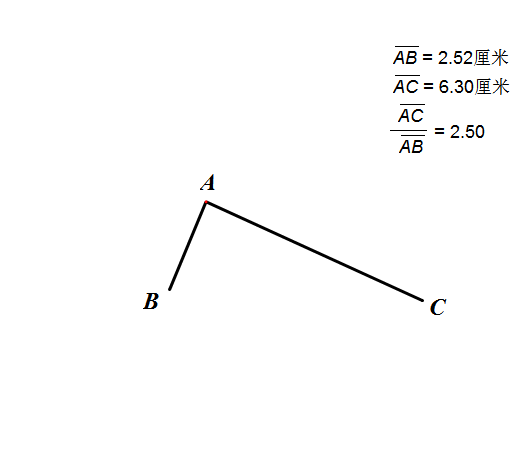 在几何画板上观察下面的图形,当P在在圆A上运动时,PC、PB的长在不断的发生变化,但AB与AC的比值却始终保持不变。