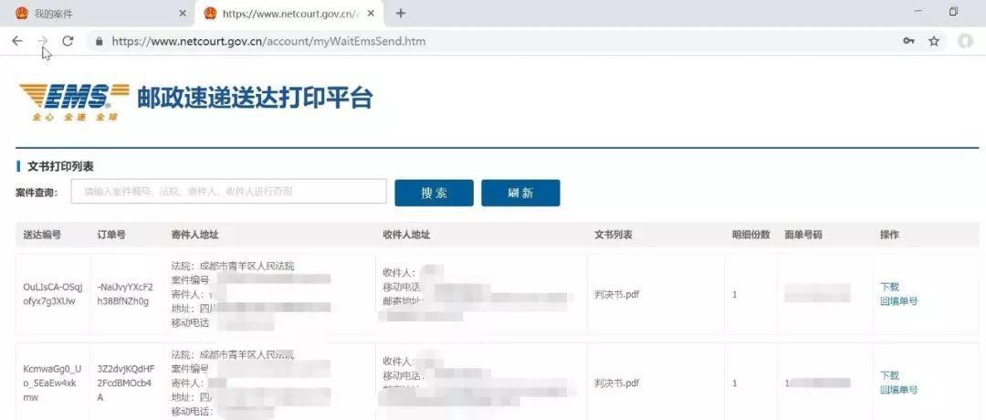 同时网上对接邮政EMS平台,自动打印、封装文书,安排线下投递,实现全自动化EMS送达,极大地减轻了法官助理和书记员的事务性工作,释放法院人力。