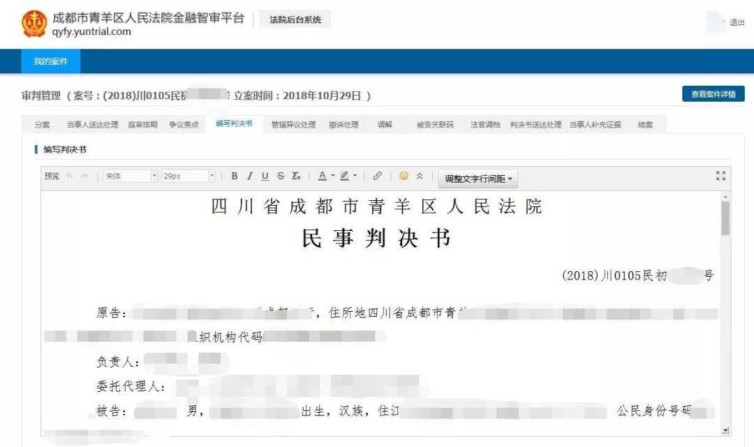 青羊法院“智审平台”上线以来,按照法院诉讼前端规制好的要素表格,填写之后上传证据,通过法院立案审核后就可进入诉讼程序。
