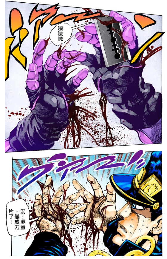 3.“女教皇”的变化速度非常快。当“女教皇”被承太郎的“白金之星”抓住时,在“白金之星”捏碎它的瞬间,它立刻又变化为锋利的刀片,割破了承太郎的手,从而逃之夭夭。