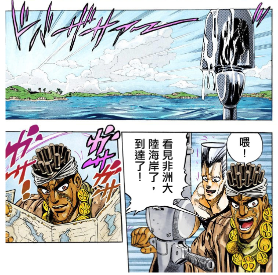 4.“女教皇”可以变化为远大于自身的物体。我们知道,替身会随着距离替身使者越来越近,而力量逐渐变强。但是“女教皇”不仅仅是力量变强,变化的物体也能越来越大。根据它在潜艇里的表现,本以为它只能变成和自身差不多大小的物体,没想到最后它直接变成了海岸边的巨型岩石,一口把承太郎他们吞了。