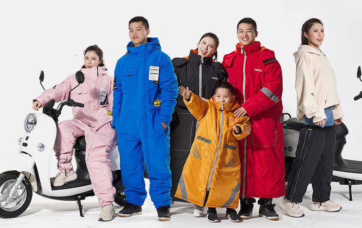 电动车安装挡风被会存在安全隐患,现在出现了一种新的防寒方式,那就是把原本安装在电动车上的挡风被变换成了可以穿戴的衣服,穿在车主的身上,同样可以起到很好的防寒作用,同时采用了类似衣服的设计,所以灵活性比较好,不会存在安全隐患,同时还可以起到很好的保暖效果。